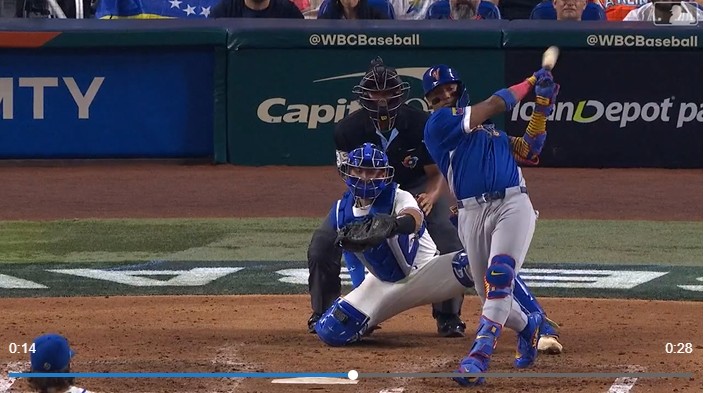 - そこから、ベネズエラの攻撃と球場の盛り上がりは止まらなかった。マイケル・ガルシアがタイムリーヒットを放ち、チューリオが勝ち越しのホームを踏むと、ルイス・アライズにもタイムリーが飛び出し、4-2とリードを広げた。タイムリーが出るたびに、ベネズエラの選手たちはベンチから飛び出し、アライズも胸を叩いて、ベンチと観客に向かって喜びを表した。