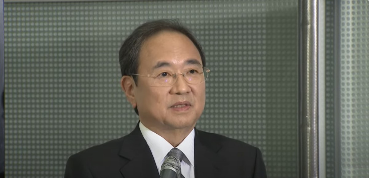 「再生・改革 8つの具体策」で会見する清水賢治フジテレビ社長 出典 Yotube/Kyodo News
