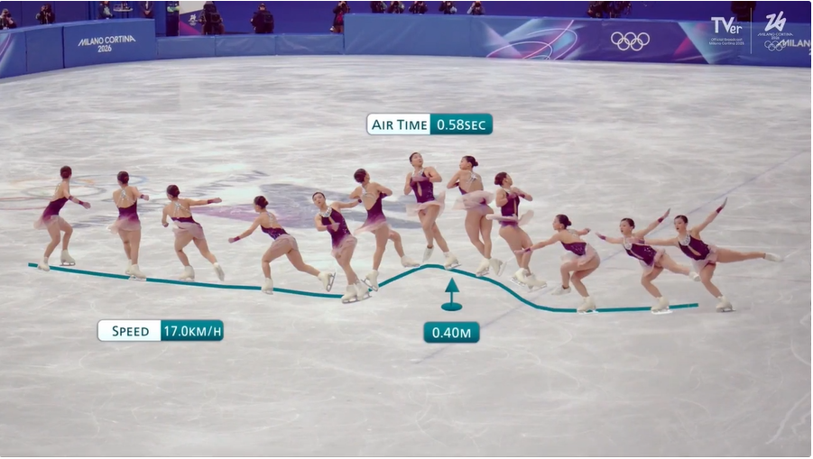 - ドローンの活用に加え、人工知能(AI)もミラノ・コルティナ2026の中継を強化した。特に、複雑な競技をより分かりやすくするために設計されたリプレイや画面上のデータ可視化が活用された。