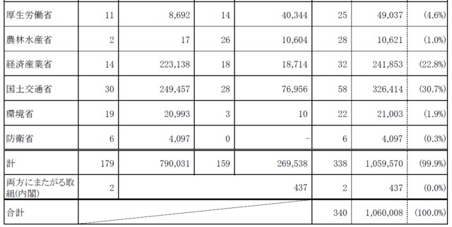 今回、会計検査院が指摘した関連支出額は、前回指摘した8011億円から2018年度の1年間で約2580億円増え、約1兆600億円になったとした。