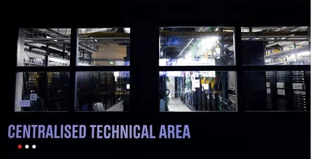 IBCのOBSエリア(OBS TECH:Obs Technical Facilities Area)には、コントリビューション(Contribution)、分配(Distribution)、ユニー信号コントロール(Unilateral)を行うCDUや、伝送(Transmission)やストレージ(VTR Logging)、オフチューブ・コメンタリー・スタジオ(Off-tube Commentary Studio)、編集室(Editting Room)、衛星サテライトファーム(Satellite Farm)などが整備される。また放送機関(MRHs:Media Rights Holders)エリアには、各MRHsがスタジオや調整室、放送機材ラック、編集室、ワーキング・スペースを設置、各放送機関のユニー放送オペレーションを行う。IBC CDU 出典 OBS