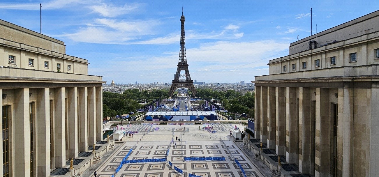 エッフェルタワーを背景にしたトロカルデ広場(Place du Trocadero)や閉会式・陸上競技が行われたスタッド・デ・フランス(Stade de France)の2カ所にOBS Broadcasting Towerを建設して、MRHsのユニーTVスタジオの設置を可能にした。このサテライト・TVスタジオからParis2024の象徴的な風景を背景にして各放送機関のキャスターやゲストが出演することになる。OBS Broadcasting Towerが設置されたトロカル広場 出典 OBC