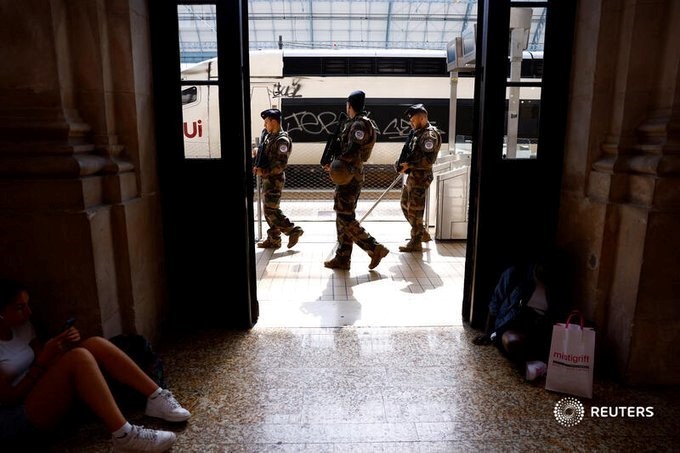 セーヌ川開会式が10時間余りに迫った中で、フランスの高速鉄道TGVの3路線で大規模な破壊行為が発生し、パリと北部や東部を結ぶTGVの運航が大幅に乱れている。狙われたのは4カ所で、この内パリから北へ向かう路線のアラス(Arras)付近と東へ向かうパニ・シュル・モゼル(Pagny-sur-Courtalain)付近、南西に向かうクルタラン(Courtalain)付近で被害が発生した。鉄道施設のケーブ設備が放火され、路線の分岐点が狙われた。捜査当局は計画的で組織的な犯行として捜査を進めている。しかし、テロという言葉は使用せず、悪意のある行為(malicious