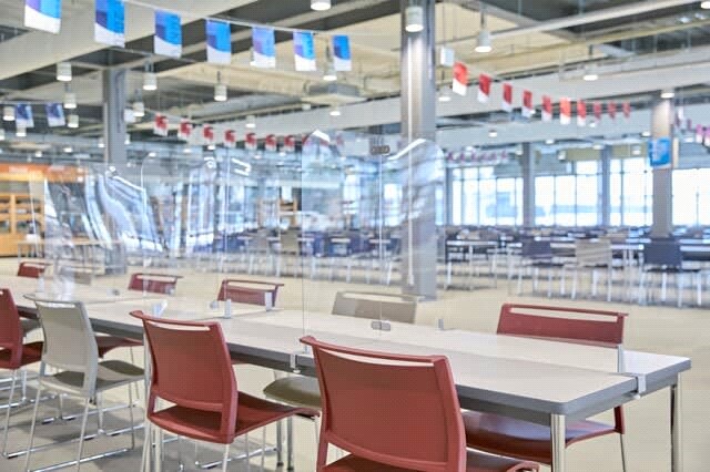 全体に席数を削減して、1席ごとに飛沫防止板で区切ったり、フィジカルディスタンスのためのフットプリントを設置する。