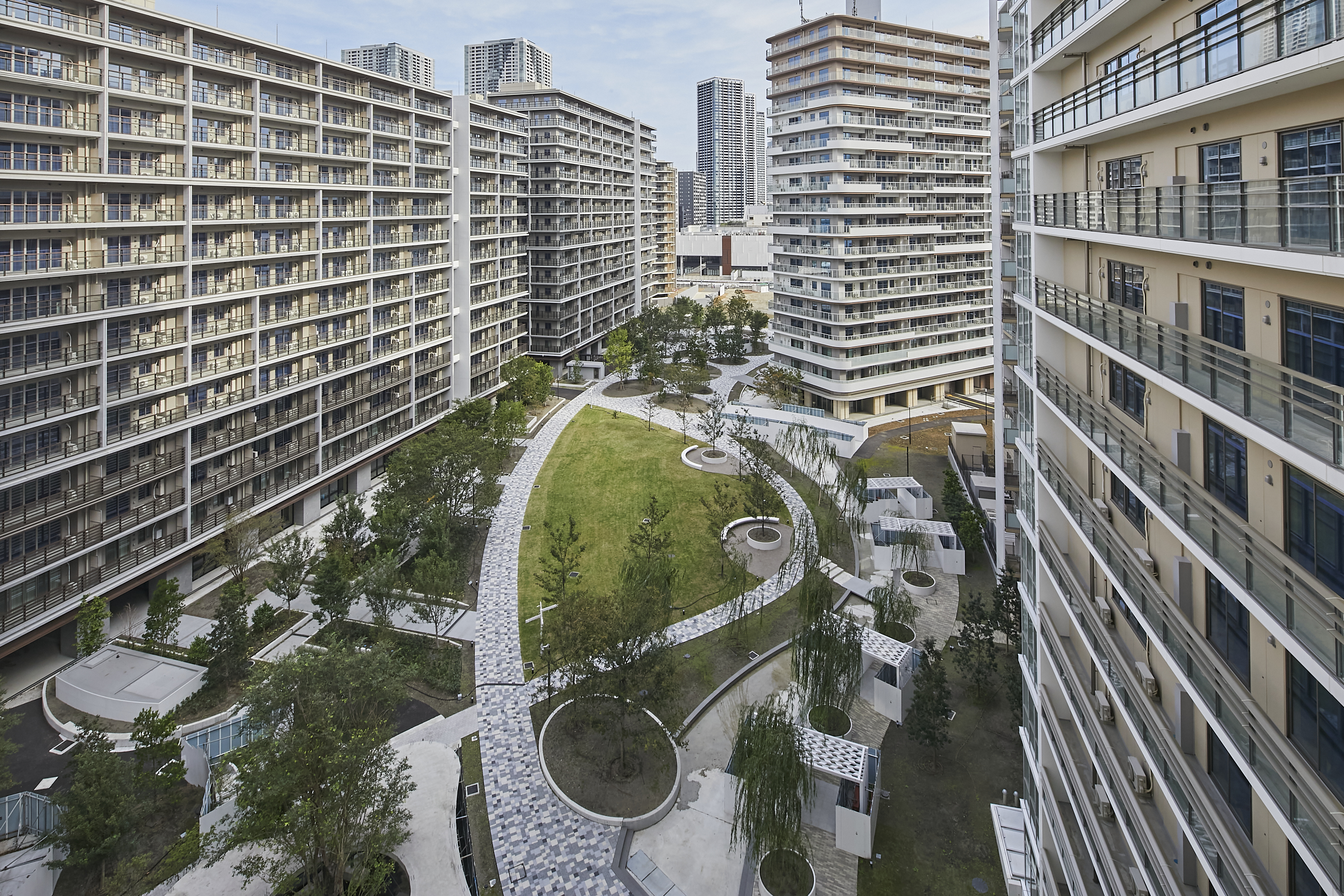 オリンピック後、選手村開発事業者は2024年11月に選手村の住宅ユニットの再利用を開始する予定である。周辺一帯の再開発も進め、2025年に誕生する「未来の都市」に選手村も吸収される。