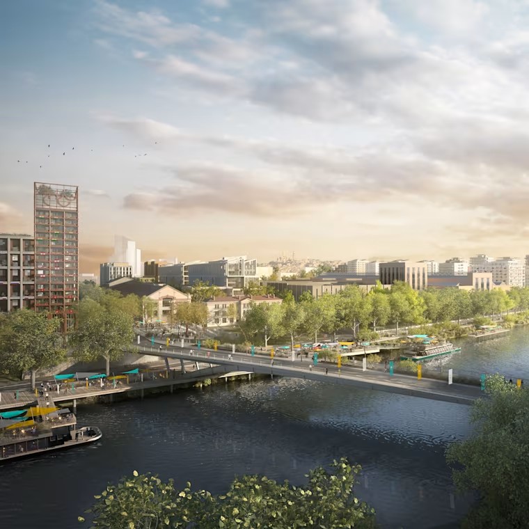 - オリンピック・パラリンピック選手村を建設するコンソーシアムは、2019年3月に活動を開始し、SOLIDEO(オリンピック施設の納入を担当する企業)の行った入札に応札した。選手村は先駆的な環境基準を遵守し、大会中のアスリートの居住施設としての要件を満たし、大会開催後は何年にも渡って地域社会に利益をもたらす「未来都市」を目指す。