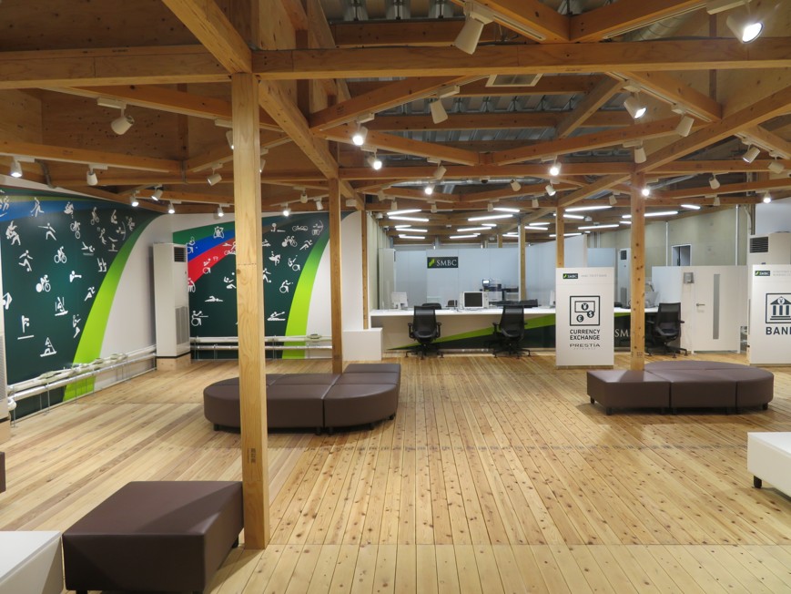 「ビレッジプラザ」は、選手の生活を支える施設で、店舗、カフェ、郵便局や宅配便、銀行、メディアセンターなどが設置されるエリア。