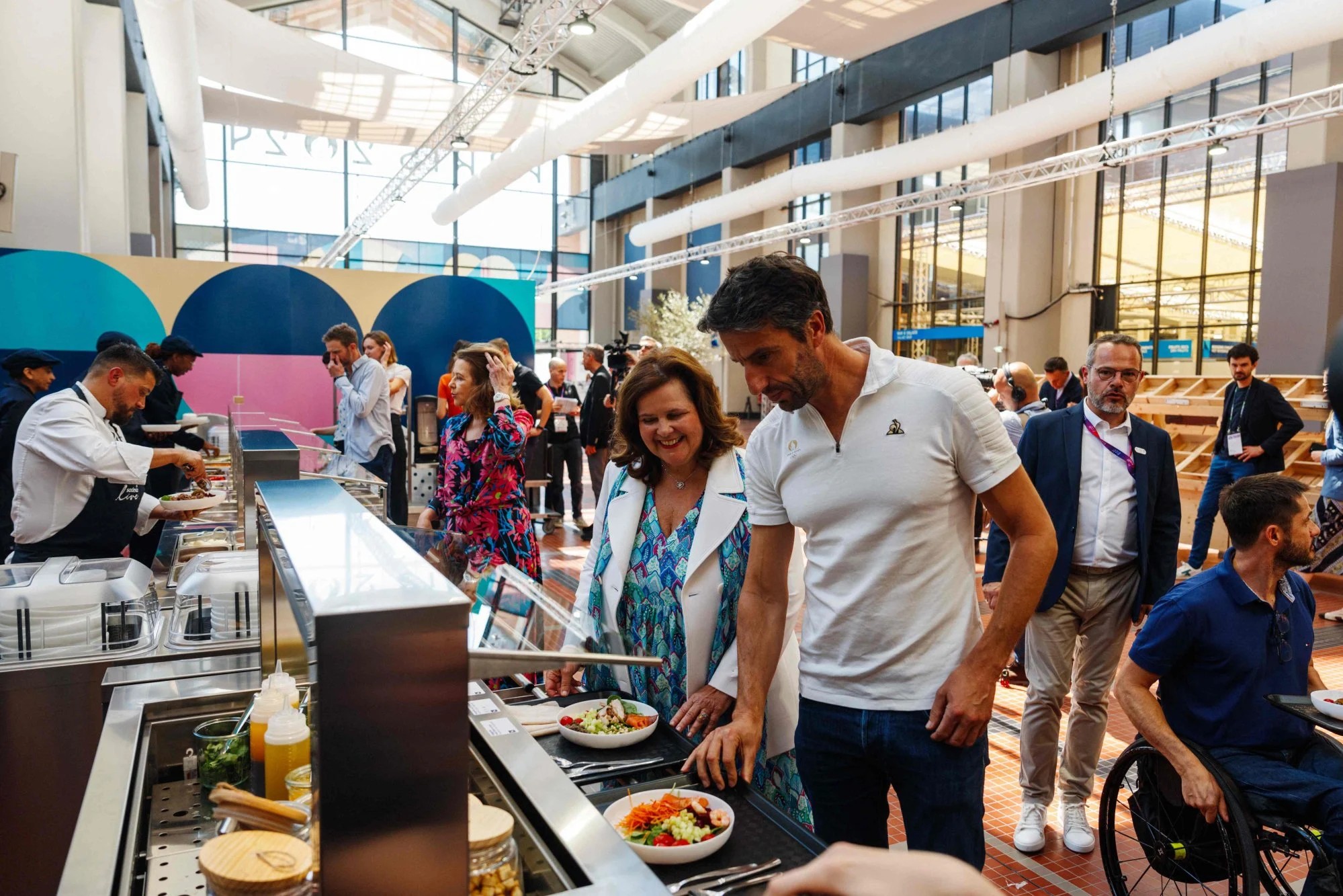 選手村 メインダイニング 試食するTony Estangueパリ五輪組織委員会長 出典 South China Morning Post