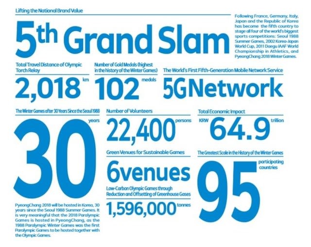 - 平昌冬季五輪組織委は、平昌五輪のもう一つの名称を「世界最初のICT五輪、平昌」に決め、韓国のICT技術力を全世界に発信する舞台にするとしている。第4次産業革命の核心となる5Gサービスをはじめ、モノのインターネット(IoT)、超高画質映像(UHD)、人工知能(AI)、バーチャルリアリティ(VR)、拡張現実(AR)など、最先端技術が五輪期間中に公開される予定だ。