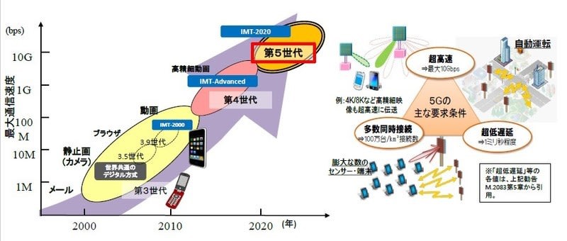- 5Gは、高画質の映像など大量のデータを、低遅延(low latency)、超高速度で送信することができる次世代の無線通信技術だ。