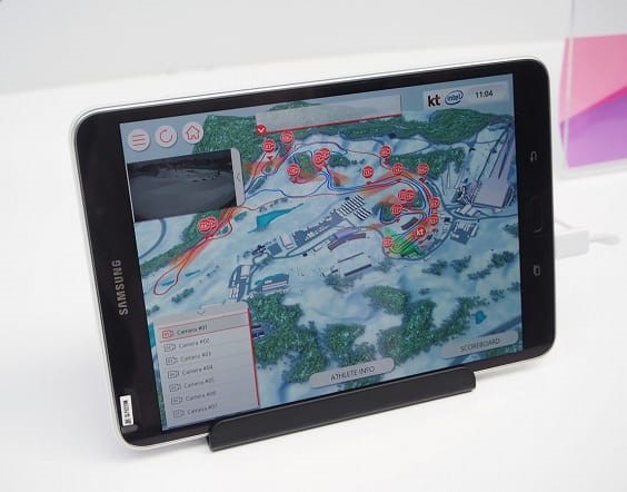 UHD(4K)などの高画質で撮影されライブで伝送する新しい映像サービスを支えているのが、超高速の5Gネットワークである。Samsungは5G対応のデモ機を開発して、タブレットPCを各競技場に約200台を配置し、新しい映像サービスの醍醐味を観客に楽しんでもらうサービスを展開している。