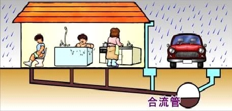 - 下水道処理は「合流式」が通常 「分流式」は限定的