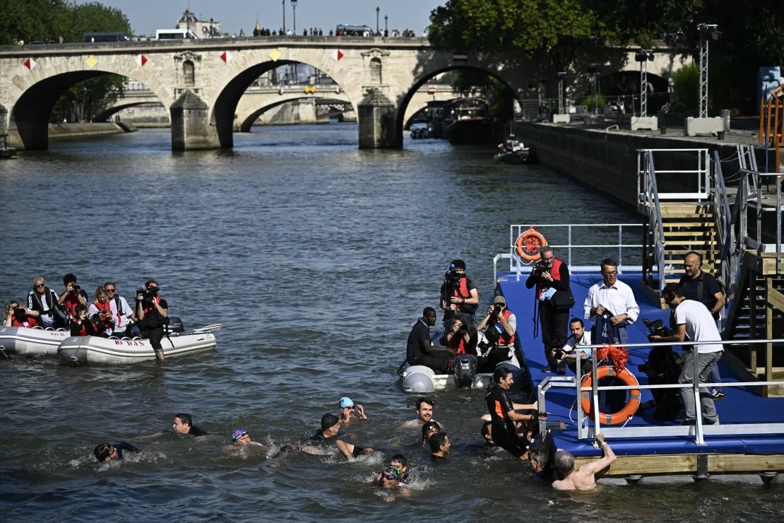 Estanguet)とセーヌ川に入って泳ぎ、水質懸念の払拭を図った。