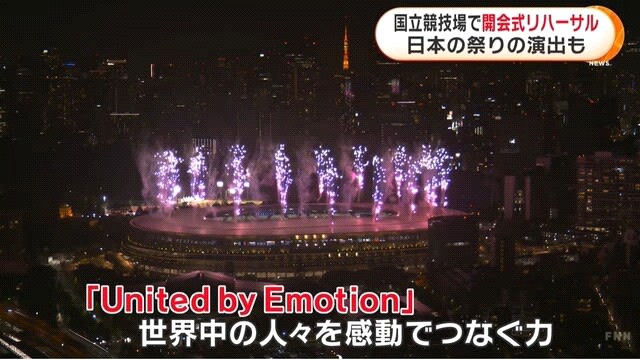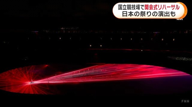 - 東京オリンピック開幕まで、あと4日となり、7月18日、本番会場の国立競技場で、開会式のリハーサルが本番と同じ時刻に行われ、その映像の一部が公開された。