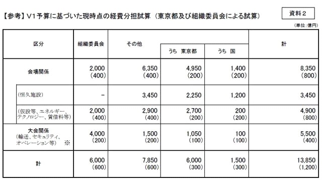 今回の合意を受けて、組織委員会では12月末に全体の開催費予算、V5を公表するとしている。