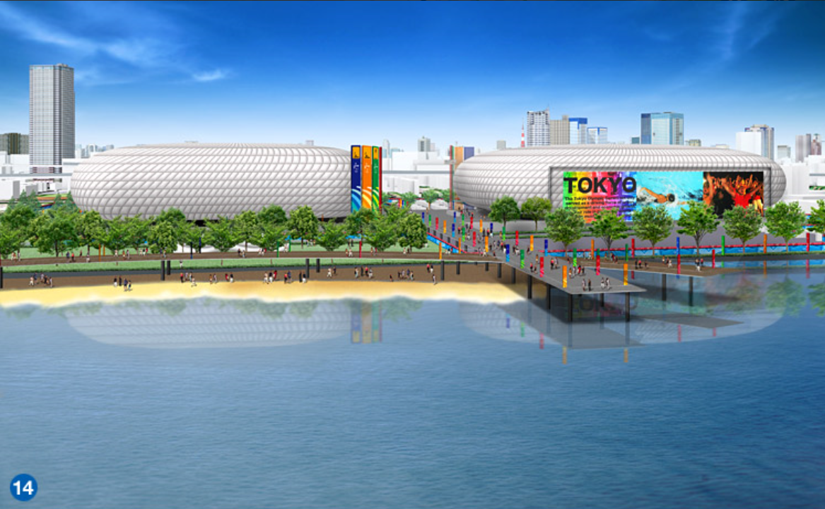 一方、トライアスロンに予定されているお台場海浜公園は、羽田空港の管制空域で取材用ヘリコプターの飛行に支障が生じることや水質汚染に懸念があることなどで横浜などへの会場変更が検討されたが、結局、変更せず、お台場海浜公園で計画通り行うこととなった。