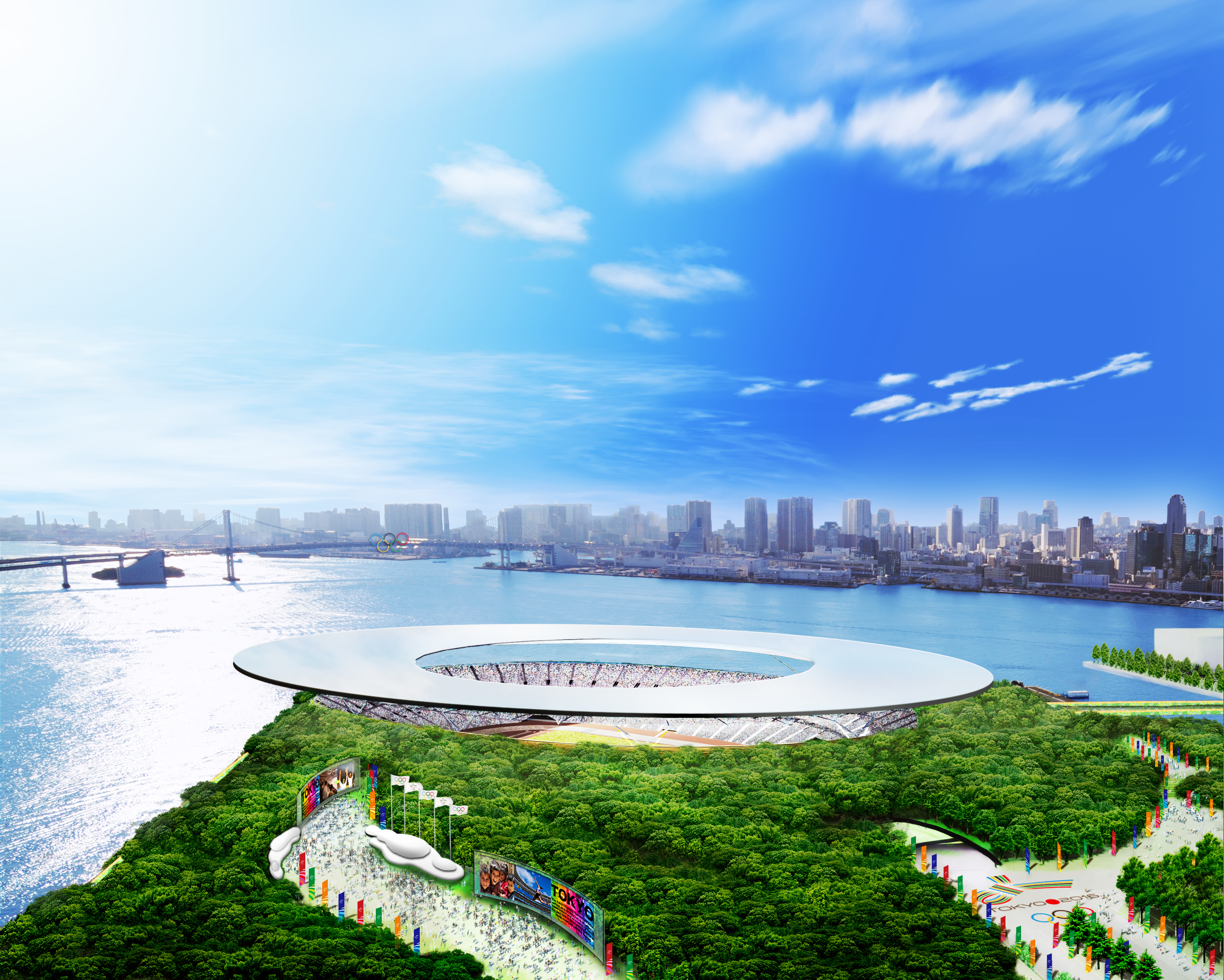 その後、五輪スタジアムは国立霞ヶ丘競技場を改修することになり、晴海埠頭の五輪スタジアム新設計画は消え、代わりに晴海埠頭には18,500人収容の選手村が建設されることになる。
