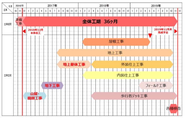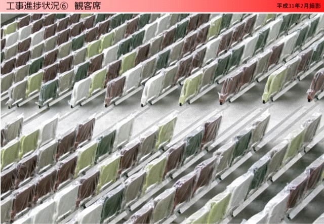 またスタンドでは約6万席の観客席の取り付け工事や歩行者デッキなどの周辺工事を行い、9月末までに主な工事を完了し、11月末の完成を目指す。