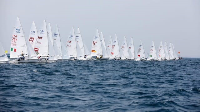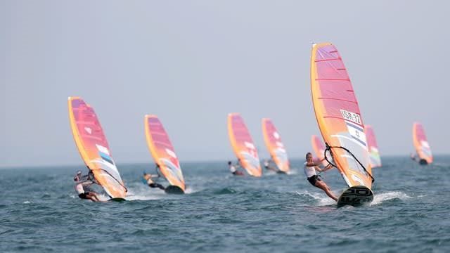 江の島で開催されるセーリング競技では、ディンギー5艇種によるヨットとウインドサーフィンが行われる。海上に設置された3つのブイ(三角形のコース)を周回して争われる競技である。