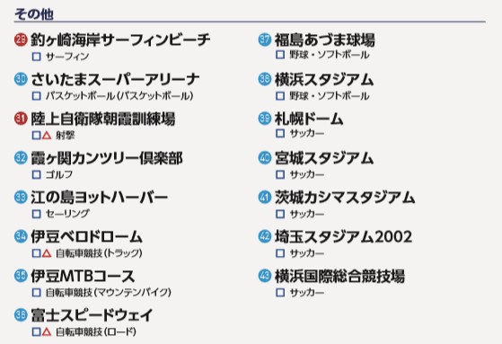 (注) 武蔵野の森公園は自転車競技(ロード)のスタート地点、富士スピードウェイはゴール地点