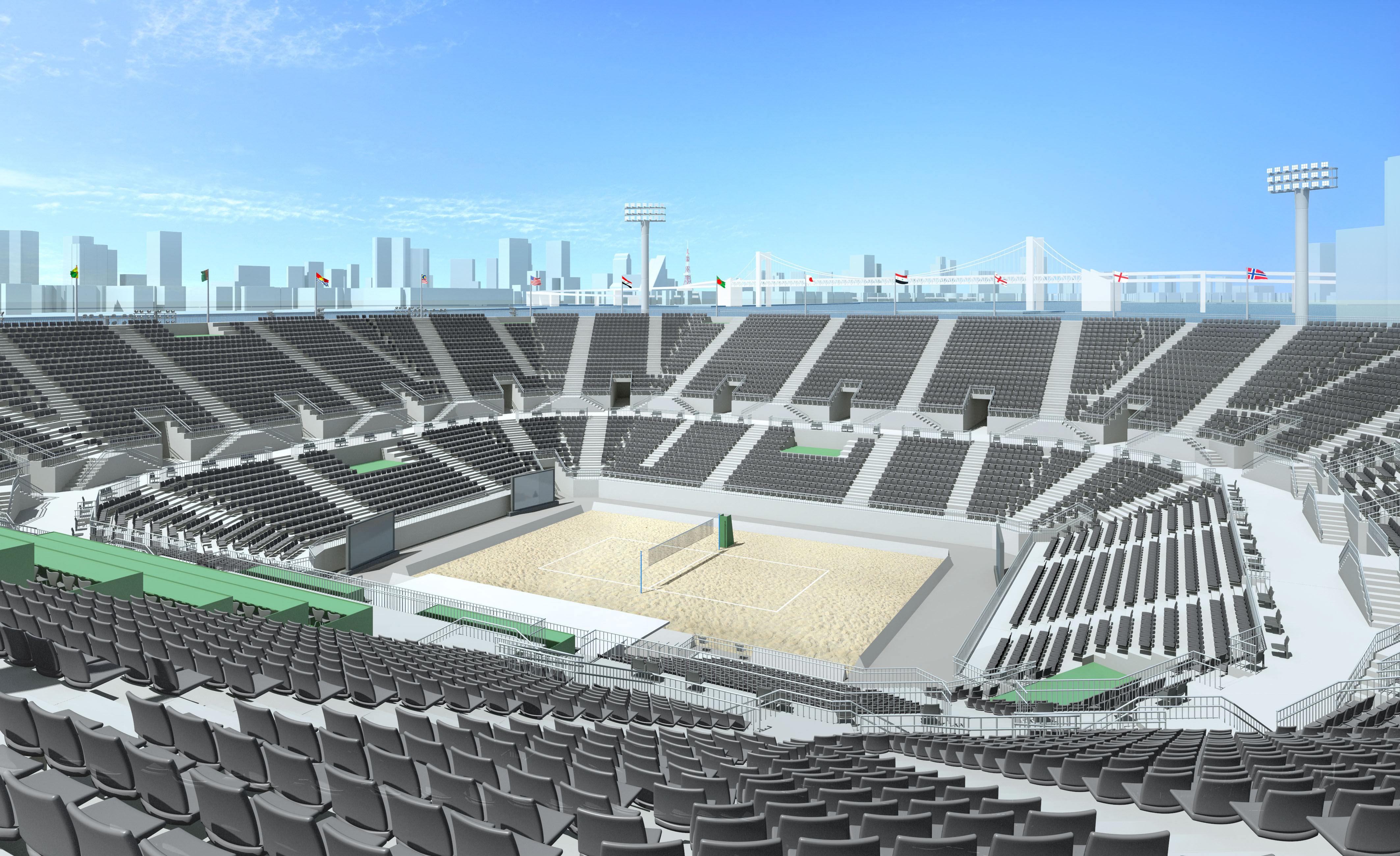 - 有明アリーナは、地上5階建てで、延べ面積約4万5600平方メートル。座席数は仮設席を含めて大会開催時には仮設を含めて約1万5000席を確保するが、五輪開催後は、約1万2700席に縮小する。メインアリーナはバレーボールコート4面又はハンドボールコート3面で競技可能な規模に、サブアリーナ