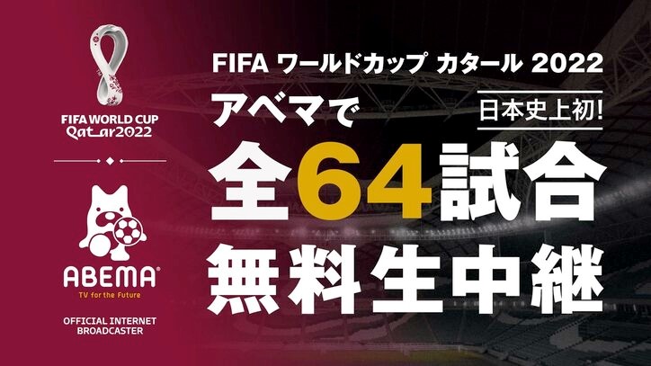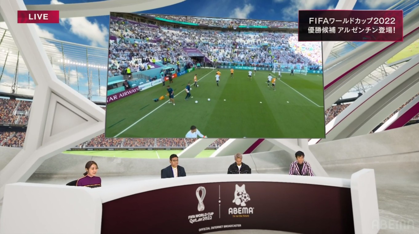 今回参入した動画配信プラットフォームのABEMAは一次リーグと全48試合、この内、スペイン-ドイツ戦、アルゼンチン-サウジアラビア戦など13試合を独占生中継。決勝トーナメントは全16試合を配信、この内、準々決勝2試合をABEMAが独占生中継する